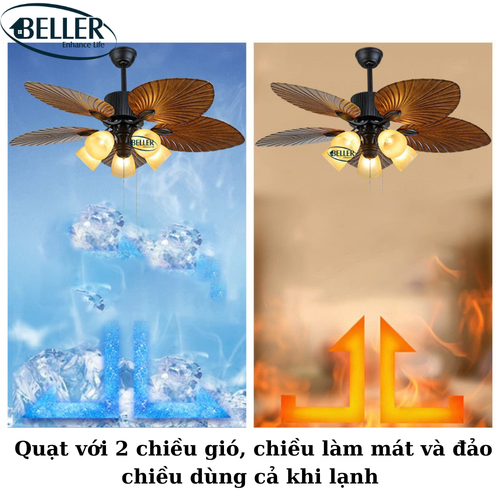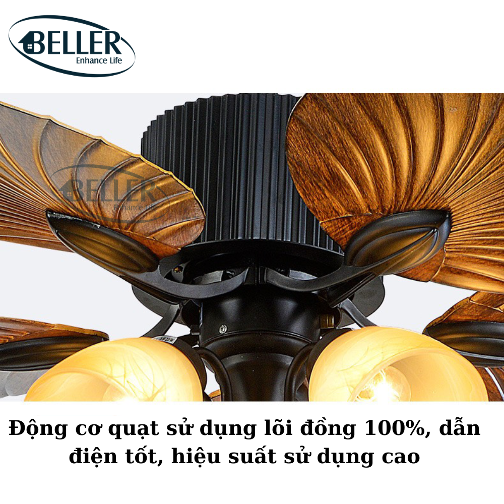 Quạt trần Beller 51BL – 069 cánh quạt được thiết kế cho luồng không khí tối ưu, động cơ và cánh quạt cân bằng chính xác để vận hành không rung lắc. Động cơ có ba tụ điện và có 6 tốc độ gió, động cơ đảo chiều có công suất cao cấp với cảm ứng mô-men xoắn 165.5 X 15 mm để vận hành êm ái.