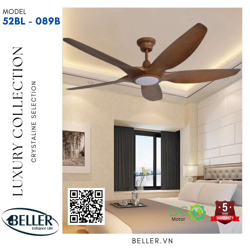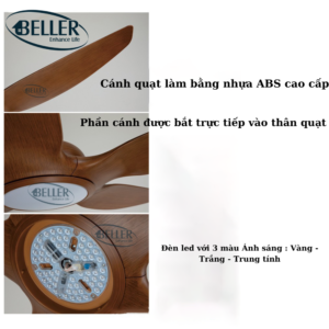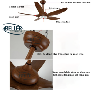 Quạt trần Beller 52BL – 089B cánh quạt được thiết kế cho luồng không khí tối ưu, động cơ và cánh quạt cân bằng chính xác để vận hành không rung lắc. Động cơ có ba tụ điện và có 6 tốc độ gió, động cơ đảo chiều có công suất cao cấp với cảm ứng mô-men xoắn 165.5 X 15 mm để vận hành êm ái.