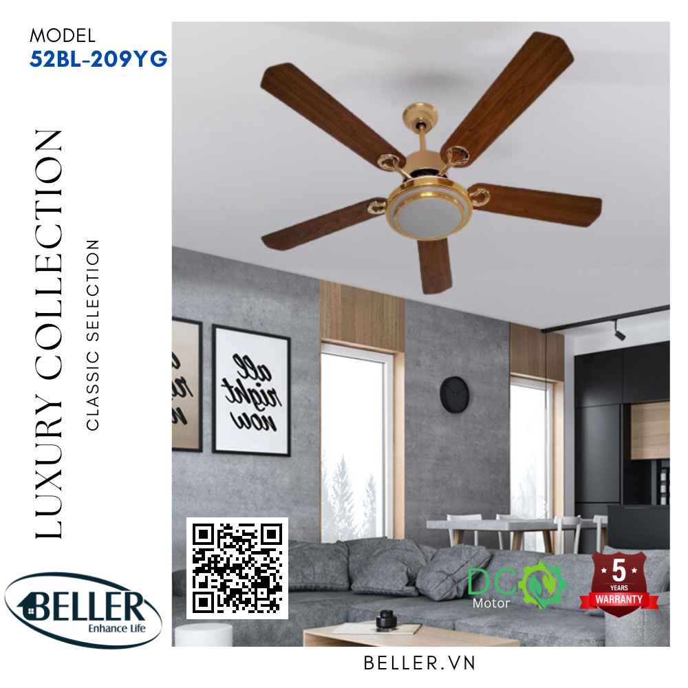 Bạn đang băn khoăn vì không gian sống của gia đình mình quá chật chội không thể lắp quạt trần trong mùa nắng nóng? Đừng lo lắng, đã có ngay giải pháp ưu việt giúp giải quyết vấn đền khó nhằn này cho những căn phòng có diện tích hạn chế. Một sản phẩm quạt trần hiện đại mang tên BELLER 52BL – 209YG với thiết kế tối giản, ít chi tiết, kiểu dáng thời thượng bắt kịp những xu hướng thiết kế mới nhất.