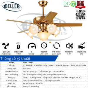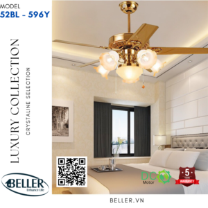 Một chiếc quạt trần tân cổ điển nhưng vẫn không quên nhiệm vụ cần phải hợp thời thì phải kể đến mẫu sản phẩm đáng được chọn nhất của nhà BELLER mẫu quạt trần đèn 52BL – 596Y!