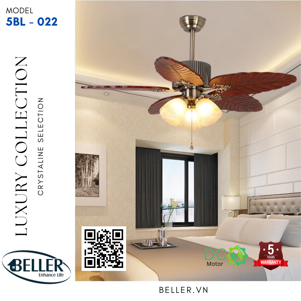 Với thiết kế này giúp không gian không chỉ tăng khả năng chiếu sáng mà còn thể hiện được sự sang trọng. Mẫu quạt 51BL – 022 được nhiều khách hàng sử dụng trong thời gian qua, quạt được sử dụng tông màu trầm , cánh quạt được làm bằng gỗ cao cấp, thân quạt màu xanh đồng, sự kết hợp hài hoà về màu sắc không những tăng tính thẩm mỹ mà còn phù hợp với nhiều không gian nội thất khác nhau