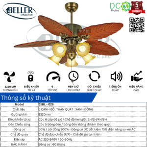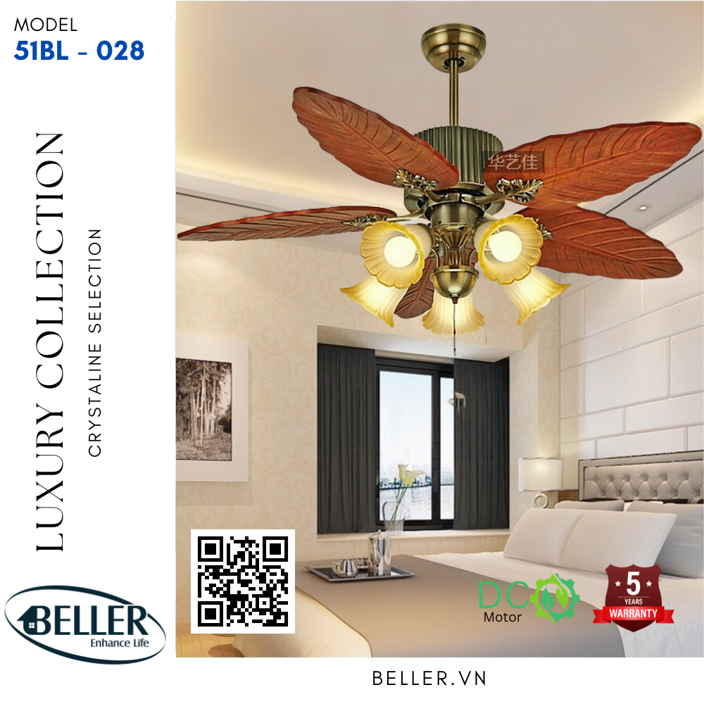 Với nhu cầu thẩm mỹ ngày càng tăng của người tiêu dùng, các nhà sản xuất không ngừng nghiên cứu và cải tiến để cho ra các dòng sản phẩm quạt trần đèn với kiểu dáng mới lạ, độc đáo hơn. Công ty Beller giới thiệu tới quý khách hàng dòng sản phẩm quạt đèn 51BL – 028, quạt được thiết kế bắt mắt với cánh hình lá được làm bằng gỗ cao cấp, quạt không những có tính năng làm mát mà còn được kết hợp với đèn chiếu sáng, với thiết kế này tăng thêm sự sang trọng khi sử dụng
